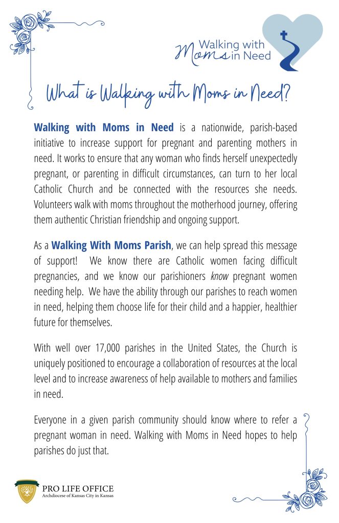 - Being a Walking with Moms in Need Parish Info Sheet